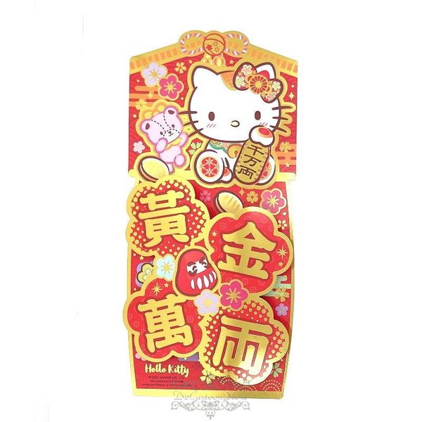 HELLO KITTY 港版 2023 兔年 賀年 直款 紅色 立體 揮春 30.5X14CM 新年 裝飾 凱蒂貓 吉蒂貓 (黃金萬両)