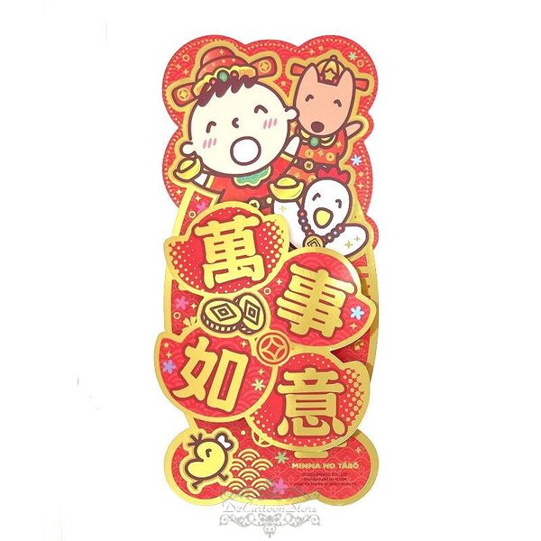 MINNA NO TABO 大口仔 港版 2023 兔年 賀年 直款 紅色 立體 揮春 30.5X14CM 新年 裝飾 大寶 (萬事如意)
