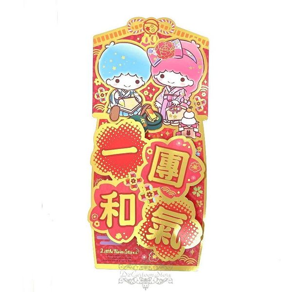 LITTLE TWIN STARS 港版 2023 兔年 賀年 直款 紅色 立體 揮春 30.5X14CM 新年 裝飾 雙子星 KIKI LALA 雙星仙子 (一團和氣)