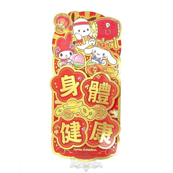 SANRIO CHARACTERS 港版 2023 兔年 賀年 直款 紅色 立體 揮春 30.5X14CM 新年 裝飾 大口仔 MELODY PC狗 玉桂狗 (身體健康)