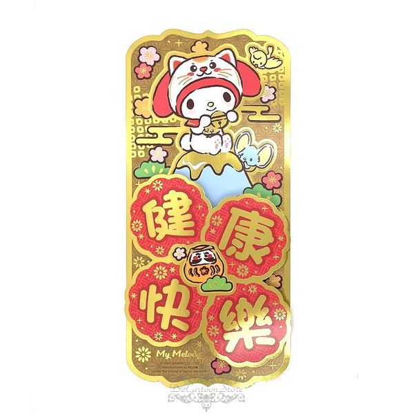 MY MELODY 港版 2023 兔年 賀年 直款 金色 立體 揮春 30.5X14CM 新年 裝飾 美樂蒂 (健康快樂)