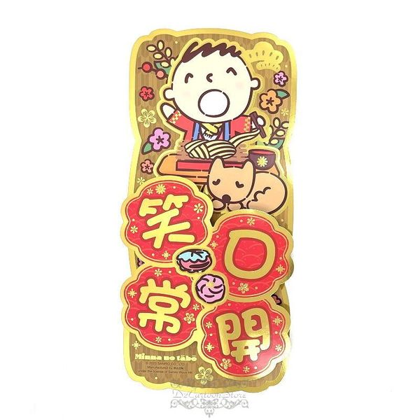 MINNA NO TABO 大口仔 港版 2023 兔年 賀年 直款 金色 立體 揮春 30.5X14CM 新年 裝飾 大寶 (笑口常開)