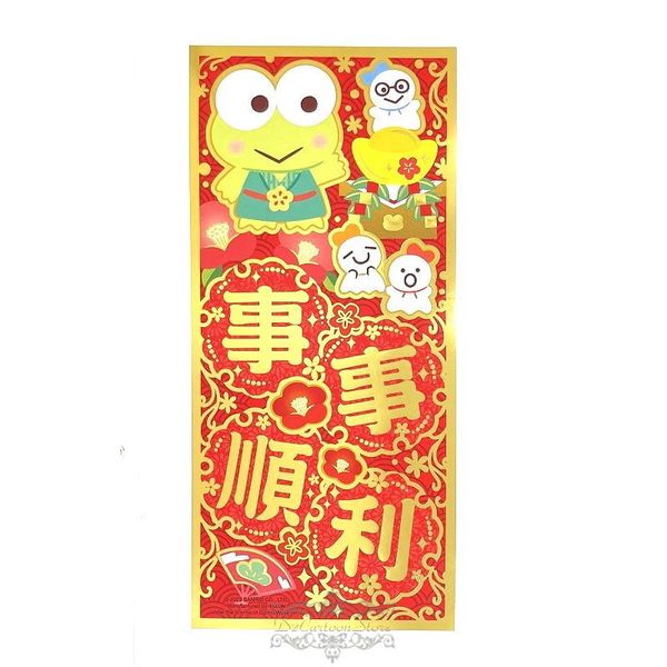 KEROKEROKEROPPI 青蛙 KEROPPI 港版 2023 兔年 賀年 直款 紅色 金邊框 揮春 30.5X14CM 新年 裝飾 大眼蛙 可洛比 (事事順利)