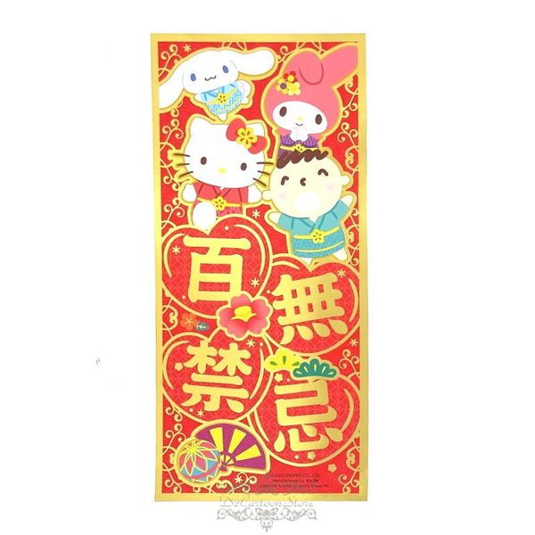 SANRIO CHARACTERS 港版 2023 兔年 賀年 直款 紅色 金邊框 揮春 30.5X14CM 新年 裝飾 KITTY MELODY 大口仔 玉桂狗 (百無禁忌)