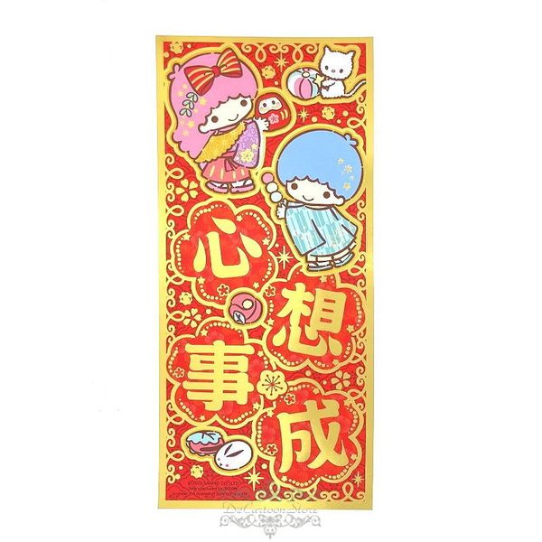 LITTLE TWIN STARS 港版 2023 兔年 賀年 直款 紅色 金邊框 揮春 30.5X14CM 新年 裝飾 雙子星 KIKI LALA 雙星仙子 (心想事成)