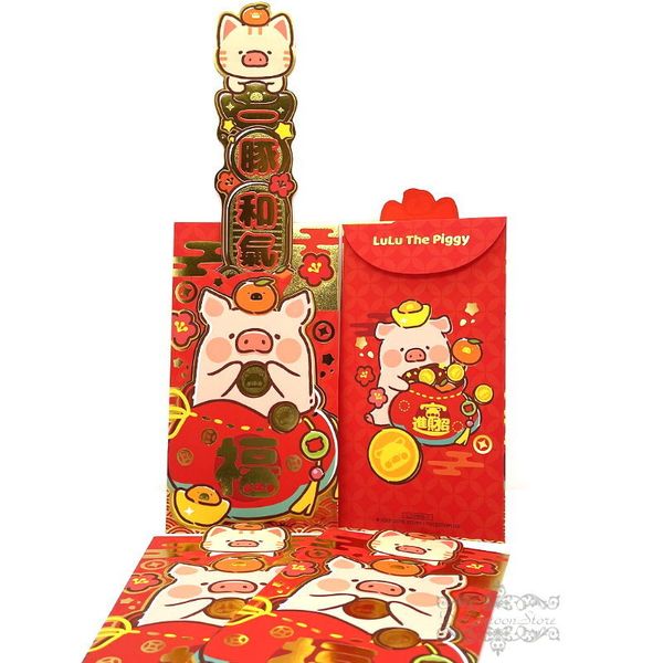 LULU THE PIGGY 港版 2023 兔年 賀年 手拉賀語 燙金 利是封 4個裝 紅封包 紅包 壓歲錢 新年 罐頭豬 LULU豬