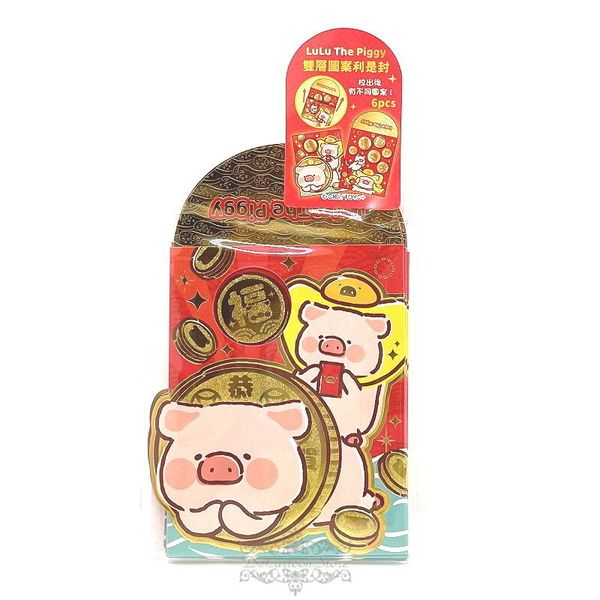 LULU THE PIGGY 港版 2023 兔年 賀年 雙層圖案 燙金 利是封 6個裝 紅封包 紅包 壓歲錢 新年 9.4X11CM 罐頭豬 LULU豬