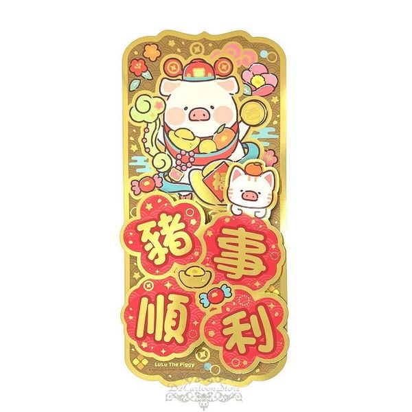 LULU THE PIGGY 港版 2023 兔年 賀年 直款 金色 立體 揮春 30.5X14CM 新年 裝飾 罐頭豬 LULU豬 (豬事順利)