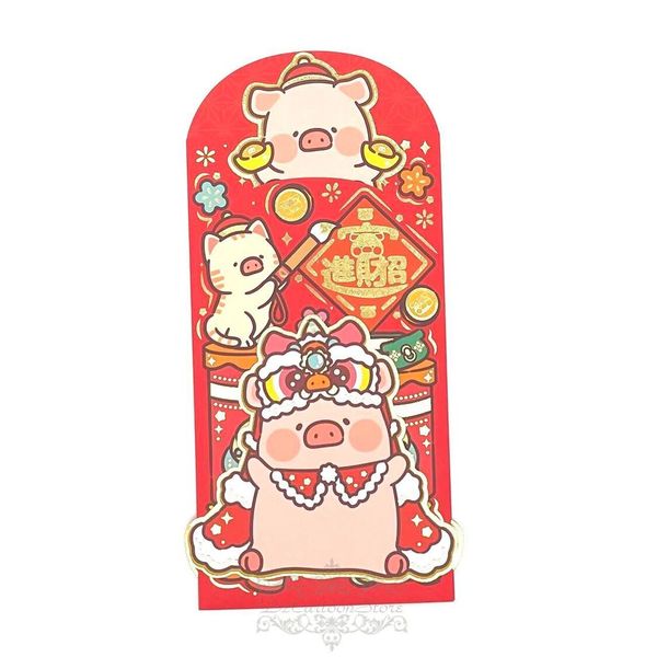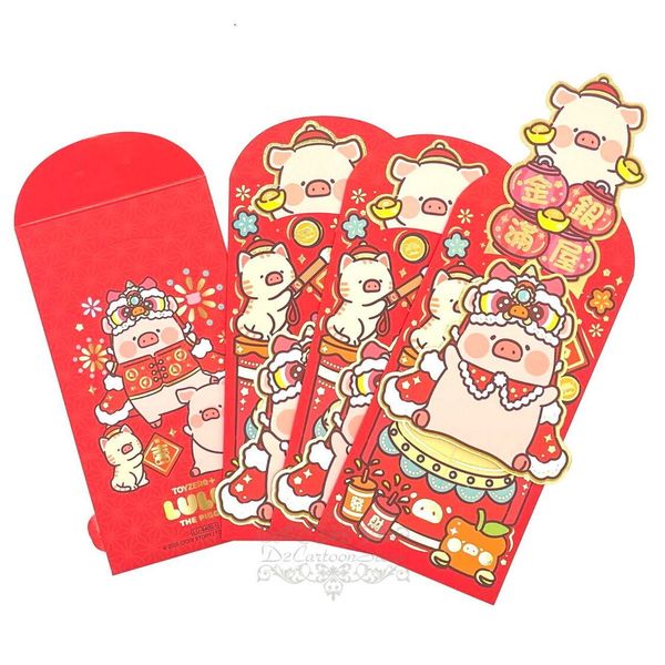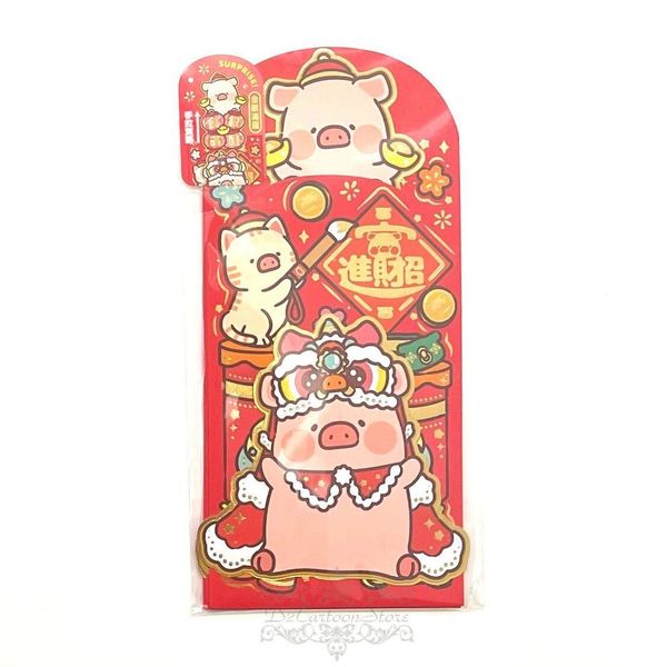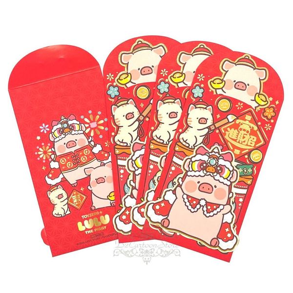 LULU THE PIGGY-LULU THE PIGGY 港版 2025 蛇年 賀年 手拉賀語 燙金 利是封 4個裝 9X19.6CM 紅封包 紅包 壓歲錢 新年 罐頭豬 LULU豬