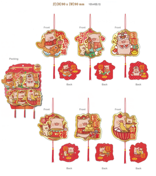 LULU THE PIGGY-LULU THE PIGGY 港版 2025 蛇年 賀年 咭牌 卡牌 吊飾 掛飾 家居 裝飾 盆栽 年花 桔 桃花 一套六張 罐頭豬 LULU豬