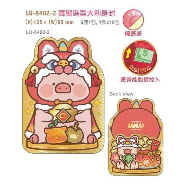 LuLu The Piggy-LULU THE PIGGY 港版 2026 馬年 賀年 舞獅造型 燙金 利是封 6個裝 紅封包 紅包 壓歲錢 新年 罐頭豬 LULU豬