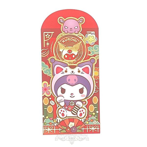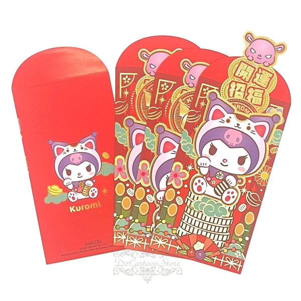 SANRIO-KUROMI 港版 2025 蛇年 賀年 手拉賀語 燙金 利是封 4個裝 9X19.6CM 紅封包 紅包 壓歲錢 新年 酷洛米 庫洛米 可羅米