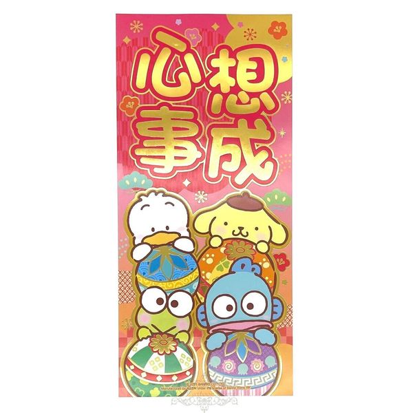 SANRIO-SANRIO CHARACTERS 港版 2025 蛇年 賀年 直款 彩色 揮春 5.5X12CM 新年 裝飾 (心想事成)