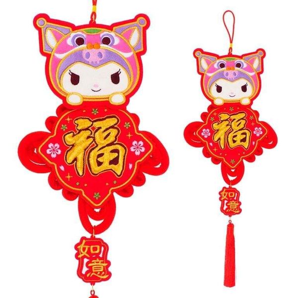 SANRIO-KUROMI 港版 2025 蛇年 賀年 直款 布藝 刺繡 福字 吊飾 掛飾 掛件 新年 裝飾 (9-8275) 酷洛米 庫洛米 可羅米