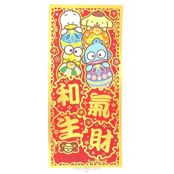 SANRIO-SANRIO CHARACTERS 港版 2025 蛇年 賀年 直款 紅色 金邊框 揮春 5.5X12CM 新年 裝飾 (和氣生財)