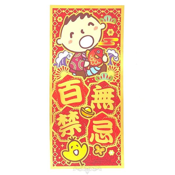 SANRIO-MINNA NO TABO 大口仔 港版 2025 蛇年 賀年 直款 紅色 金邊框 揮春 5.5X12CM 新年 裝飾 大寶 (百無禁忌)