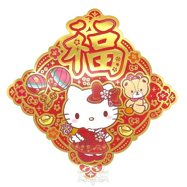 SANRIO-HELLO KITTY 港版 2025 蛇年 賀年 花邊 菱形 平面 揮春 23.5X23.5CM 新年 裝飾 凱蒂貓 吉蒂貓