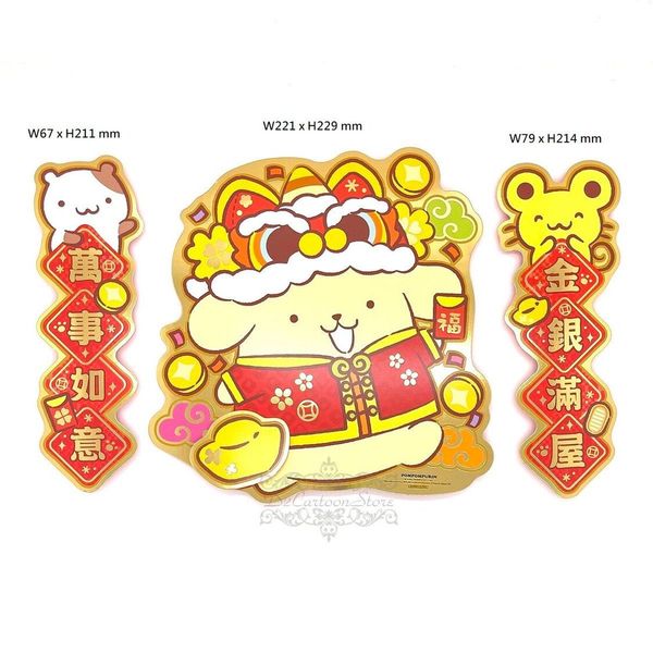 SANRIO-POMPOMPURIN 布甸狗 港版 2025 蛇年 賀年 門神 揮春 3件套 新年 裝飾 布丁狗