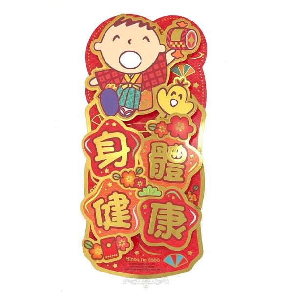 SANRIO-MINNA NO TABO 大口仔 港版 2025年 賀年 直款 紅色 立體 賀語 揮春 30.5X14CM 新年 裝飾 蛇年 大寶 (身體健康)