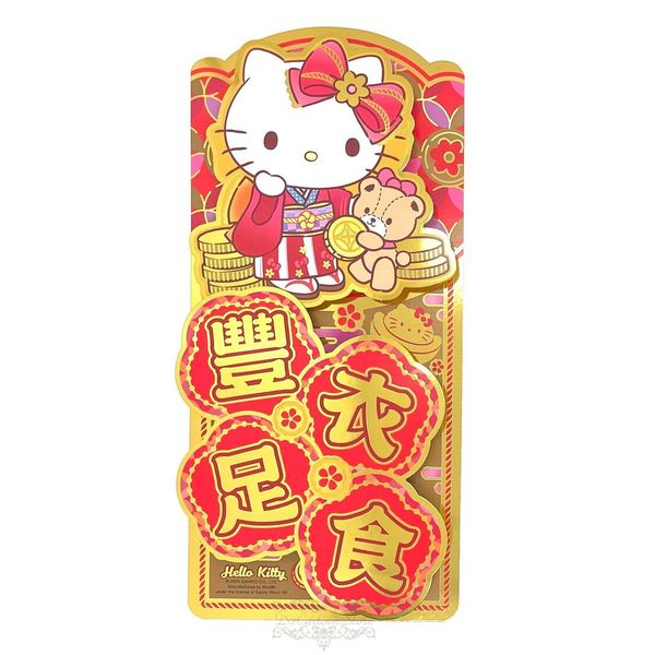 SANRIO-HELLO KITTY 港版 2025年 賀年 直款 金色 立體 賀語 揮春 30.5X14CM 新年 裝飾 蛇年 凱蒂貓 吉蒂貓 (豐衣足食)
