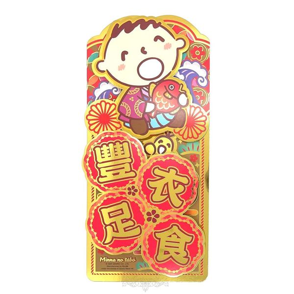SANRIO-MINNA NO TABO 大口仔 港版 2025年 賀年 直款 金色 立體 賀語 揮春 30.5X14CM 新年 裝飾 蛇年 大寶 (豐衣足食)