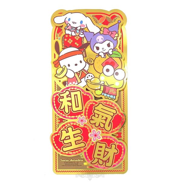 SANRIO-SANRIO CHARACTERS 港版 2025年 賀年 直款 金色 立體 賀語 揮春 30.5X14CM 新年 裝飾 蛇年 (和氣生財)