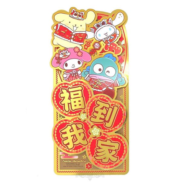 SANRIO-SANRIO CHARACTERS 港版 2025年 賀年 直款 金色 立體 賀語 揮春 30.5X14CM 新年 裝飾 蛇年 (福到我家)