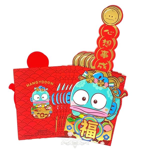 SANRIO-HANGYODON 水怪 港版 2026 馬年 賀年 手拉賀語 燙金 利是封 6個裝 紅封包 紅包 壓歲錢 新年 海怪 人魚漢頓