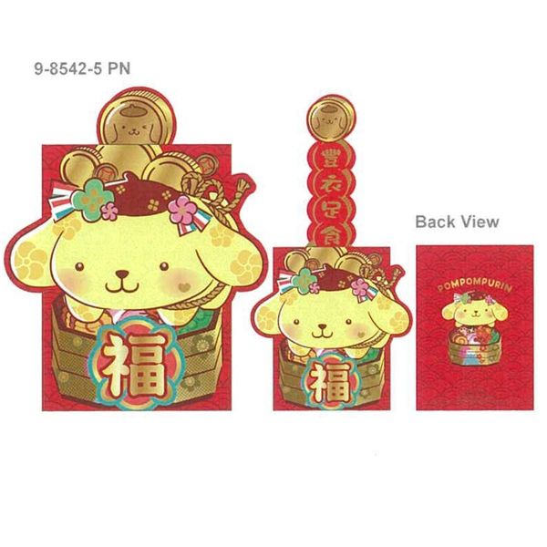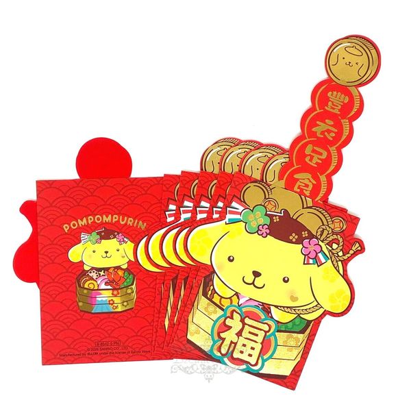 SANRIO-POMPOMPURIN 布甸狗 港版 2026 馬年 賀年 手拉賀語 燙金 利是封 6個裝 紅封包 紅包 壓歲錢 新年 布丁狗