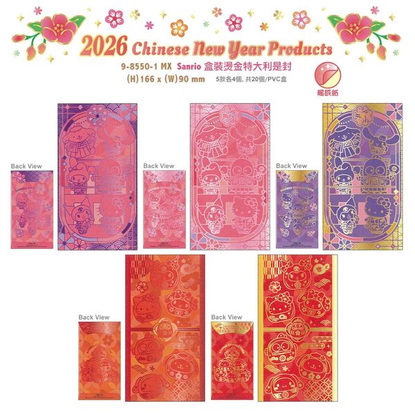 SANRIO-SANRIO CHARACTERS 港版 2026 馬年 賀年 幻變色 燙金 盒裝 利是封 20個裝 紅封包 紅包 壓歲錢 新年