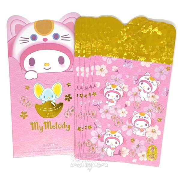 SANRIO-MY MELODY 港版 2026 馬年 賀年 招財花花 燙金 利是封 6個裝 紅封包 紅包 壓歲錢 新年 美樂蒂
