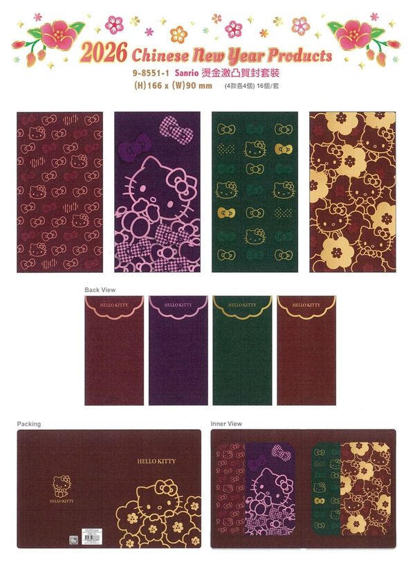 SANRIO-HELLO KITTY 港版 2026 馬年 賀年 燙金 激凸 盒裝 利是封 16個裝 紅封包 紅包 壓歲錢 新年 凱蒂貓 吉蒂貓