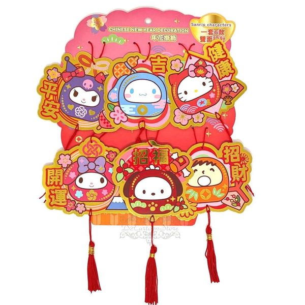 SANRIO-SANRIO CHARACTERS 港版 2026 馬年 賀年 咭牌 卡牌 吊飾 掛飾 家居 裝飾 盆栽 年花 桔 桃花 一套六張 (達摩款)