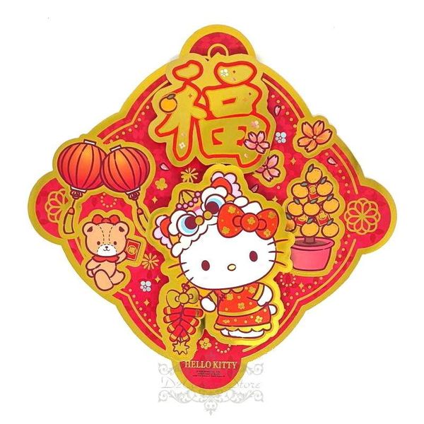SANRIO-HELLO KITTY 港版 2026 馬年 賀年 花邊 菱形 福字 立體 揮春 24.1X24.1CM 新年 裝飾 凱蒂貓 吉蒂貓