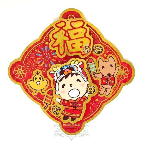SANRIO-MINNA NO TABO 大口仔 港版 2026 馬年 賀年 花邊 菱形 福字 立體 揮春 24.1X24.1CM 新年 裝飾 大寶