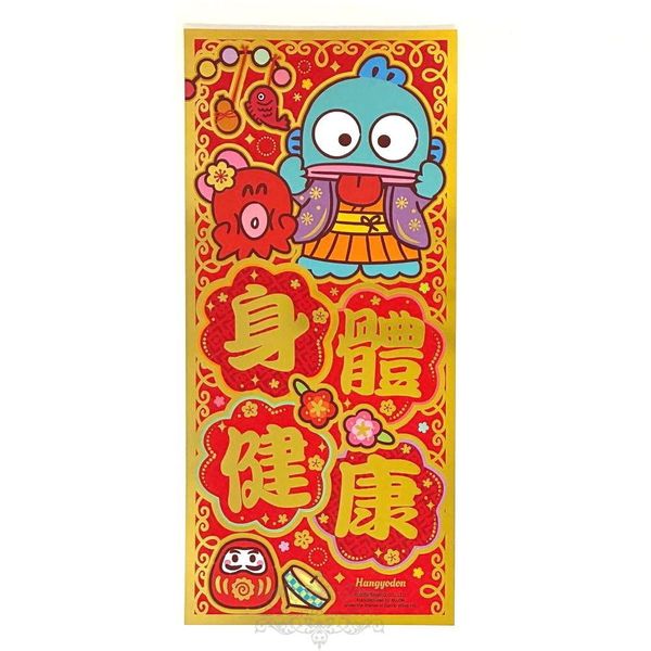 SANRIO-HANGYODON 水怪 港版 2026 馬年 賀年 直款 紅色 金邊框 雙賀語 揮春 30.5X14CM 新年 裝飾 海怪 人魚漢頓 (身體健康)