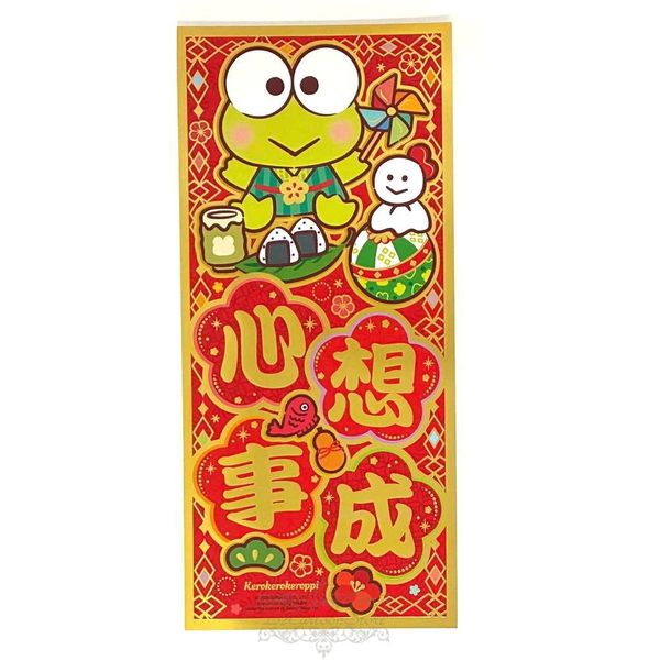 SANRIO-KEROKEROKEROPPI 青蛙 KEROPPI 港版 2026 馬年 賀年 直款 紅色 金邊框 雙賀語 揮春 30.5X14CM 新年 裝飾 大眼蛙 可洛比 (心想事成)