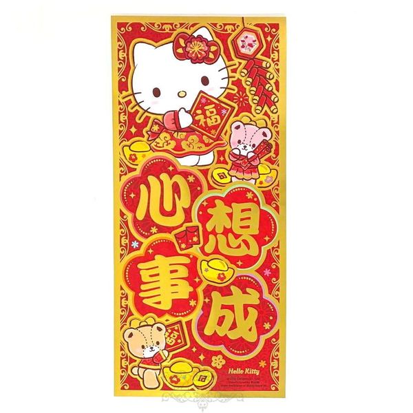 SANRIO-HELLO KITTY 港版 2026 馬年 賀年 直款 紅色 金邊框 雙賀語 揮春 30.5X14CM 新年 裝飾 凱蒂貓 吉蒂貓 (心想事成)
