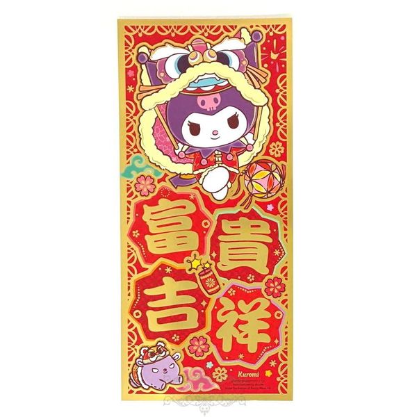 SANRIO-KUROMI 港版 2026 馬年 賀年 直款 紅色 金邊框 雙賀語 揮春 30.5X14CM 新年 裝飾 酷洛米 庫洛米 可羅米 (富貴吉祥)