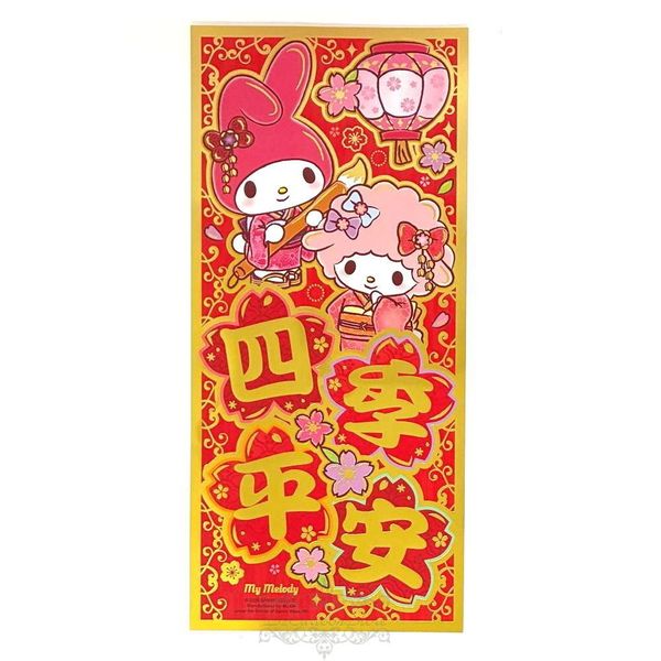 SANRIO-MY MELODY 港版 2026 馬年 賀年 直款 紅色 金邊框 雙賀語 揮春 30.5X14CM 新年 裝飾 美樂蒂 (四季平安)