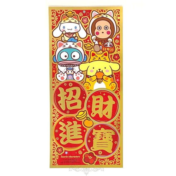 SANRIO-SANRIO CHARACTERS 港版 2026 馬年 賀年 直款 紅色 金邊框 雙賀語 揮春 30.5X14CM 新年 裝飾 (招財進寶)