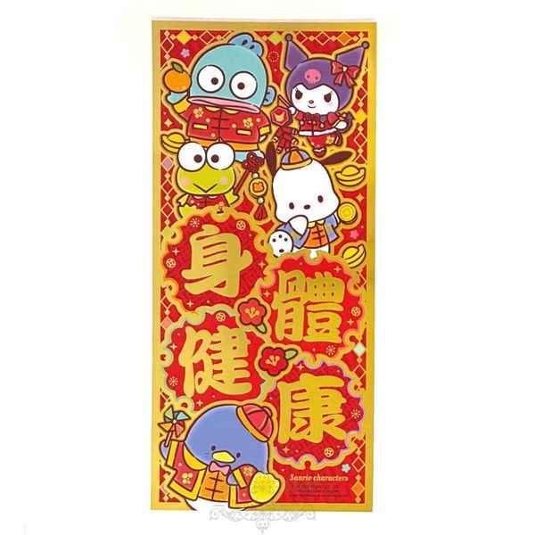 SANRIO-SANRIO CHARACTERS 港版 2026 馬年 賀年 直款 紅色 金邊框 雙賀語 揮春 30.5X14CM 新年 裝飾 (身體健康)