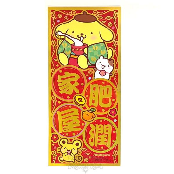 SANRIO-POMPOMPURIN 布甸狗 港版 2026 馬年 賀年 直款 紅色 金邊框 雙賀語 揮春 30.5X14CM 新年 裝飾 布丁狗 (家肥屋潤)