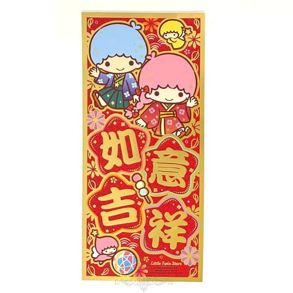 SANRIO-LITTLE TWIN STARS 港版 2026 馬年 賀年 直款 紅色 金邊框 雙賀語 揮春 30.5X14CM 新年 裝飾 雙子星 KIKI LALA 雙星仙子 (如意吉祥)