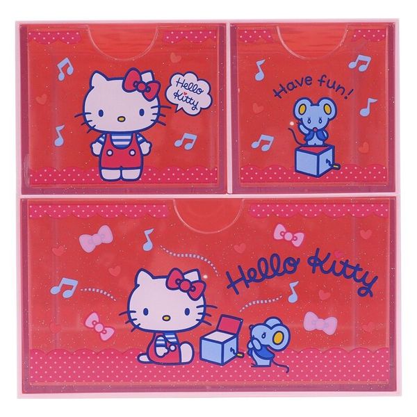 HELLO KITTY 港版 桌上 三格 收納盒 抽屜 儲物 小櫃桶 小物 家居 辦公室 收納 凱蒂貓 2019年款 絕版 (紅色)