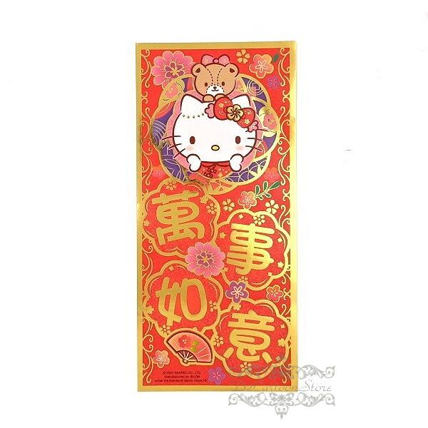 HELLO KITTY 港版 紅色造型 金邊框 賀年 直身 正規 長方形 揮春 2022 新年 裝飾 虎年 30.5X14CM 凱蒂貓 吉蒂貓 KT (萬事如意)