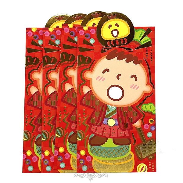MINNA NO TABO 大口仔 港版 2023 兔年 賀年 手拉賀語 燙金 利是封 4個裝 紅封包 紅包 壓歲錢 新年 大寶