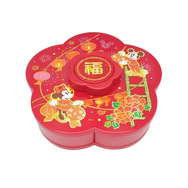 迪士尼 DISNEY MICKEY MOUSE 米奇老鼠 MINNIE MOUSE 米妮 港版 2020 鼠年 賀年 旋轉式 單層 花形 五格 糖果盒 全盒 新年 裝飾 美妮