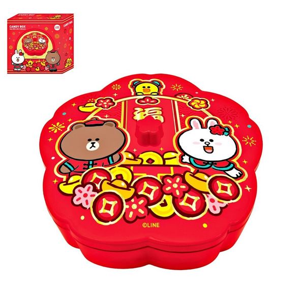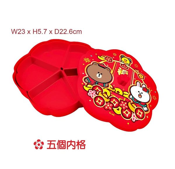 LINE FRIENDS 港版 2022 虎年 賀年 特色 單層 花形 五格 糖果盒 全盒 新年 裝飾 熊大 熊美 兔兔