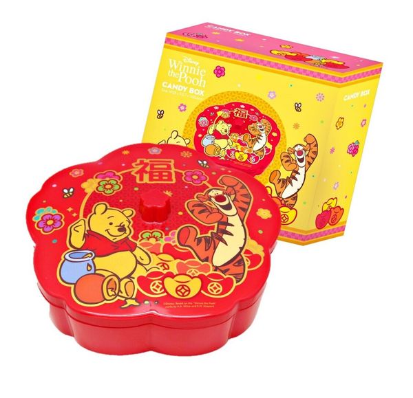 迪士尼 DISNEY WINNIE THE POOH 港版 2022 虎年 賀年 特色 單層 花形 五格 糖果盒 全盒 新年 裝飾 小熊維尼